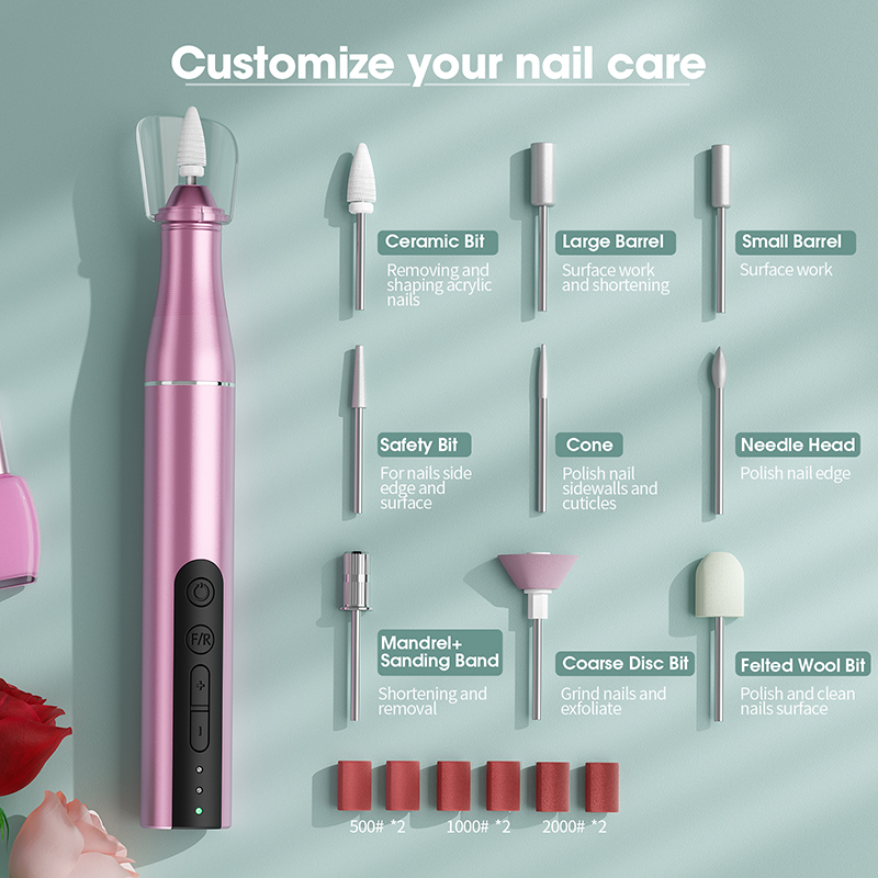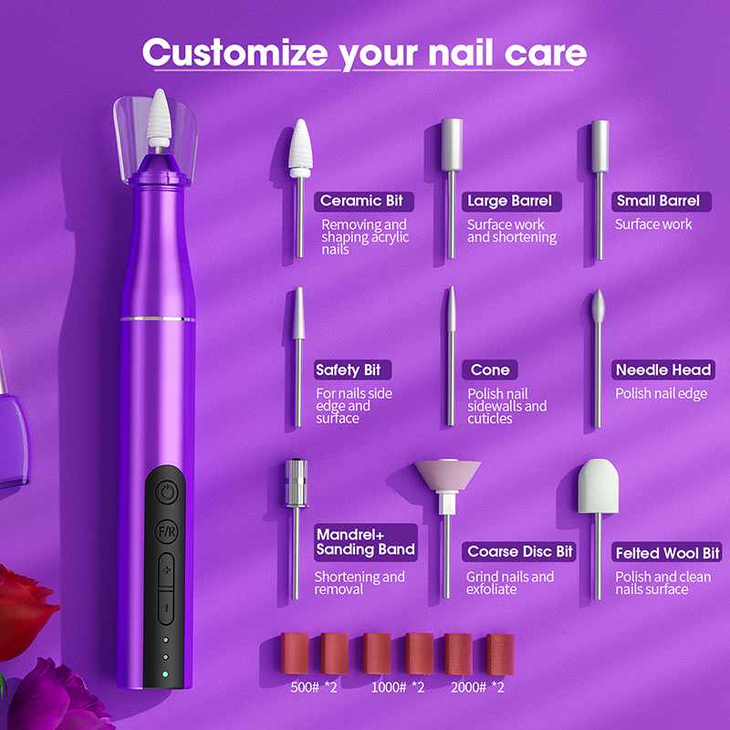 美甲鑽孔機包括 6 個不銹鋼指甲鑽頭、1 個陶瓷鑽頭和 36 個可互換砂條。美甲修腳套件可用於美甲、修腳、拋光、塑形、角質層研磨、壓克力/凝膠指甲去除或指甲美容。配件齊全且易於使用,非常適合美甲初學者!