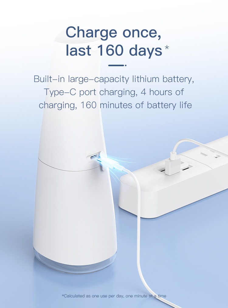 【Type-C 可充電】鼻沖洗器內建 1200mAh 可充電電池,充飽電後可使用 4 週。配備快速 USB 充電線,操作安靜。 (注意:不包括適配器)。 |