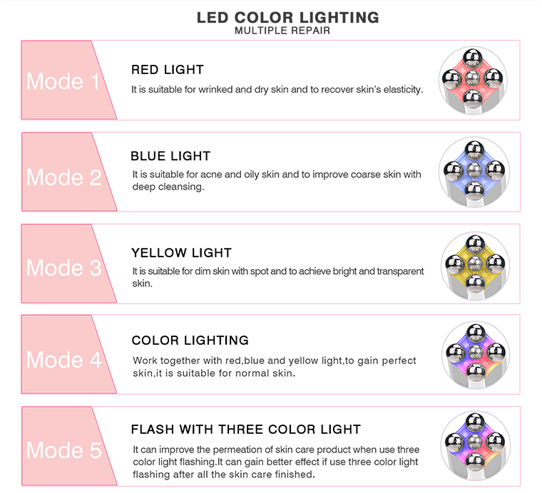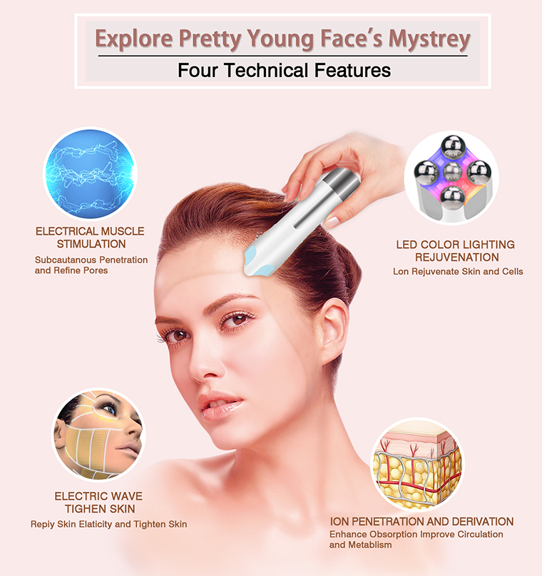 有什麼好處? -- 美容機是一種多功能抗衰老設備,包括射頻(RF)技術與紅/藍光療法、EMS減少細紋和皺紋、提高皮膚滲透和吸收能力等。
