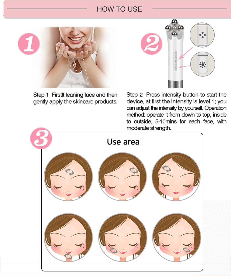 6合1護膚程序--RF根據日常護膚程序設計了6種模式。它們是#PENETRATION用於改善皮膚吸收,#CLEANING用於徹底面部清潔,#SPECIAL用於眼部護理,#LIFTING用於皮膚收緊和緊實,#COOL用於皮膚舒緩和消毒。