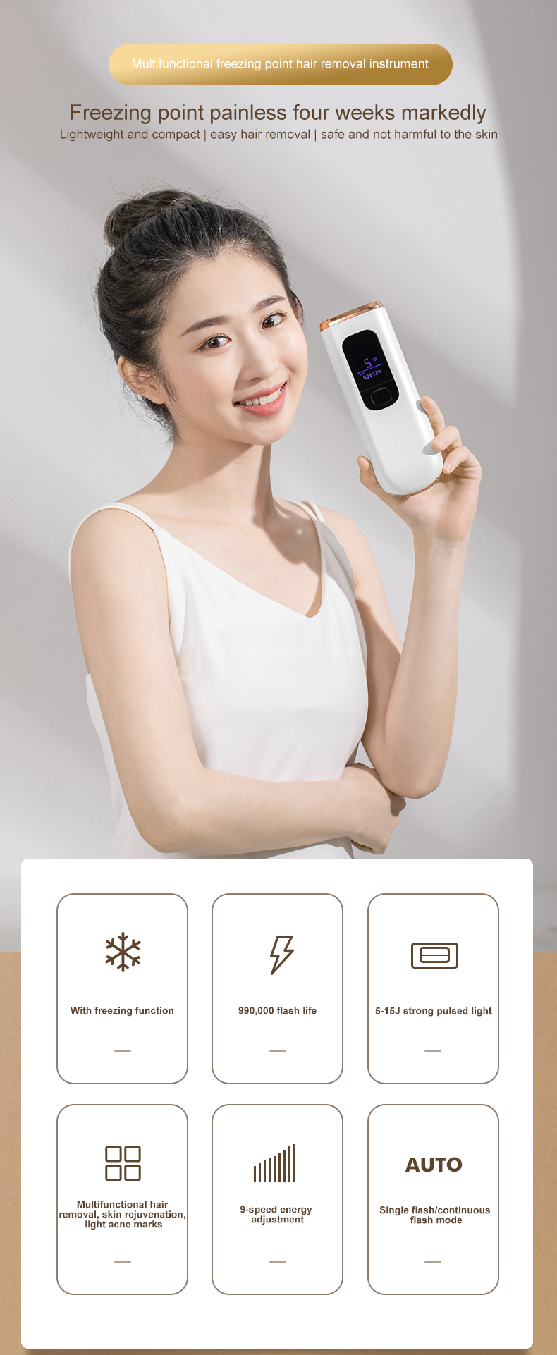 - 在家即可獲得絲般順滑的效果。它採用臨床級藍寶石冰觸技術,可將與皮膚接觸點的溫度從 158°F 降低至 67°F。
