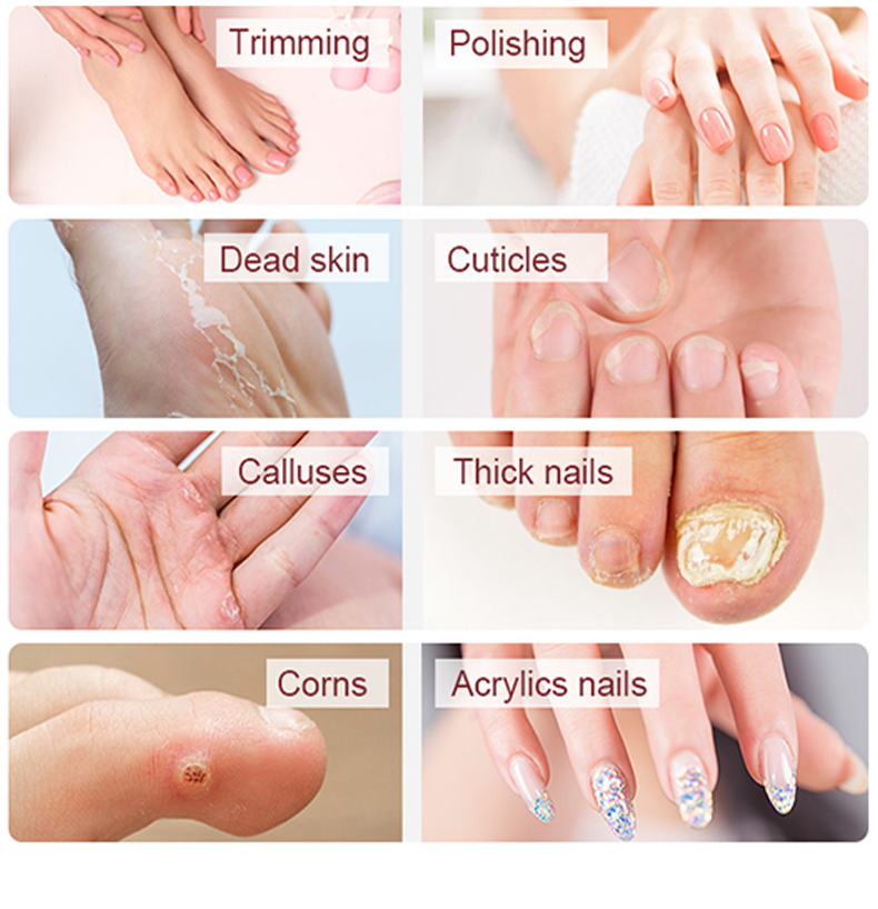 - 專業手腳指甲保養:在家中舒適地享受沙龍品質的效果,提升您的指甲保養習慣。我們的專業美甲和足療套件提供了所有工具來塑造、銼磨和拋光指甲,去除角質層和老繭,也可用於內生腳趾甲治療